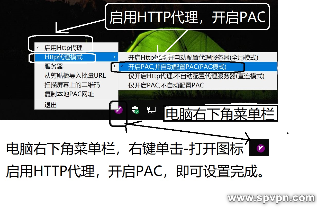 右下角托盘找到v2rayN图标,在图标上点击右键,找到“系统代理” ,点击“自动配置系统代理”,此