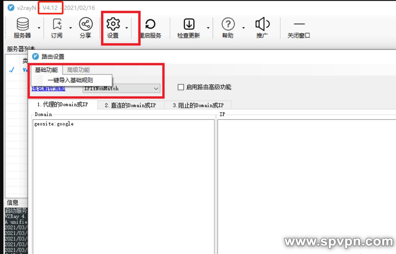 主界面点击“设置” -> “路由设置” -> “基础功能” -> “一键导入基础规则”,然后点击“确定”: