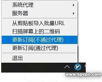 重要一步来了,选择“订阅—更新订阅“,默认选择”不通过代理“即可。