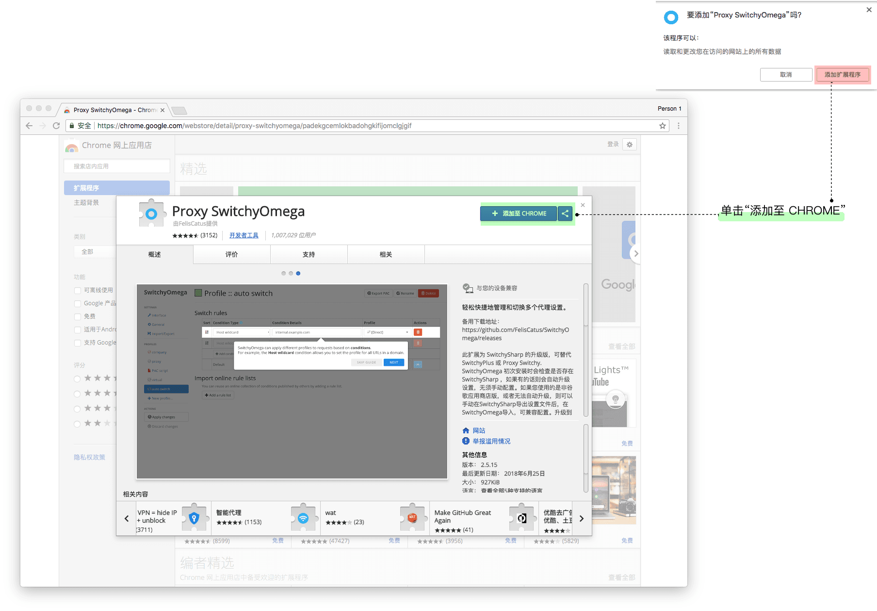 在 Github 下载 SwitchyOmega.crx 文件并拖移入chrome://extensions/ 。