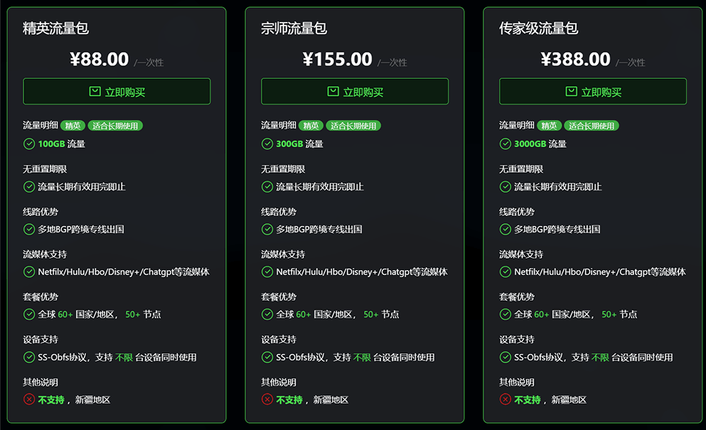精英流量包:88元/100GB ,流量长期有效用完即止